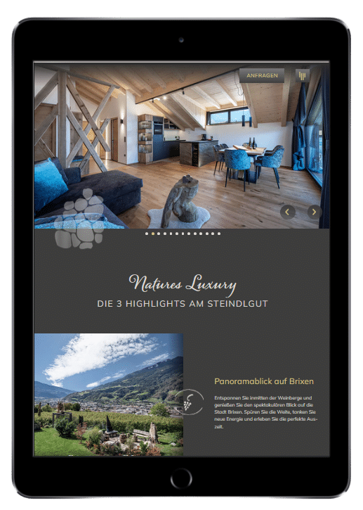 Professionelle, emotionale Bilder steigern den Wiedererkennungswert deiner Website und rücken deinen Betrieb ins rechte Licht. Aussagekräftige Bilder sind mitentscheidend beim Erfolg der Homepage. Bereits beim Fotoshooting wird genau berücksichtigt, welche Botschaften dem potenziellen Interessenten vermittelt werden sollen. Dementsprechend werden dann die passenden Aufnahmen gemacht.